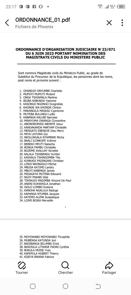 Le Président de la République, Félix Tshiseskedi a nommé plus de 2300 magistrats du Ministère public pour l’exercice 2023.